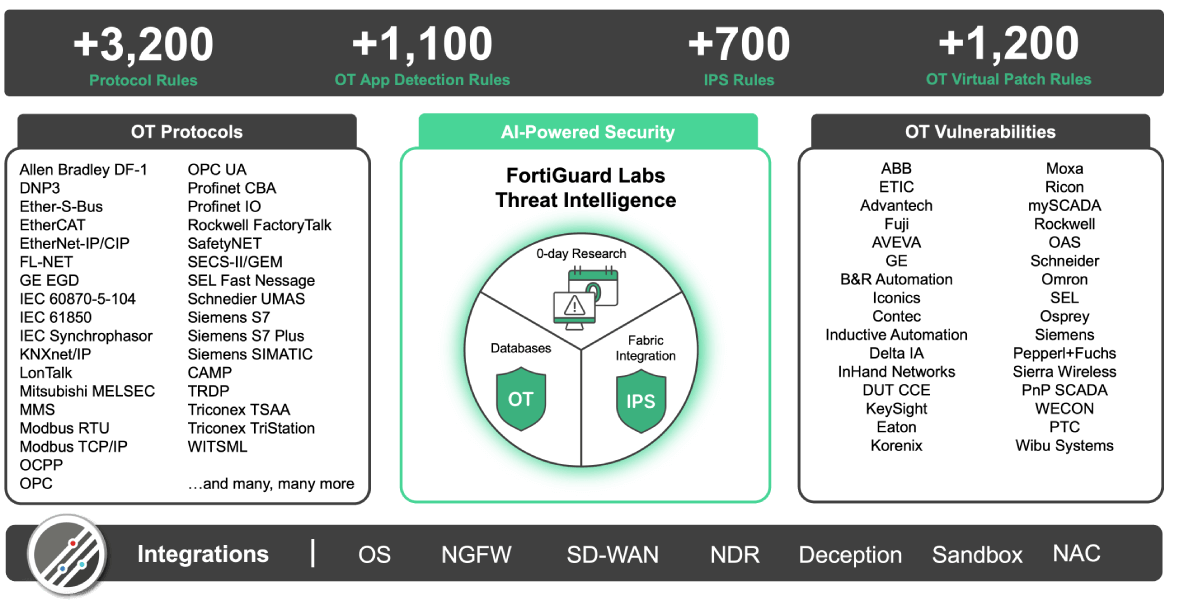 This means Fortinet doesn’t just protect data traffic, it actively safeguards control system communications that affect real‑world machinery and processes.